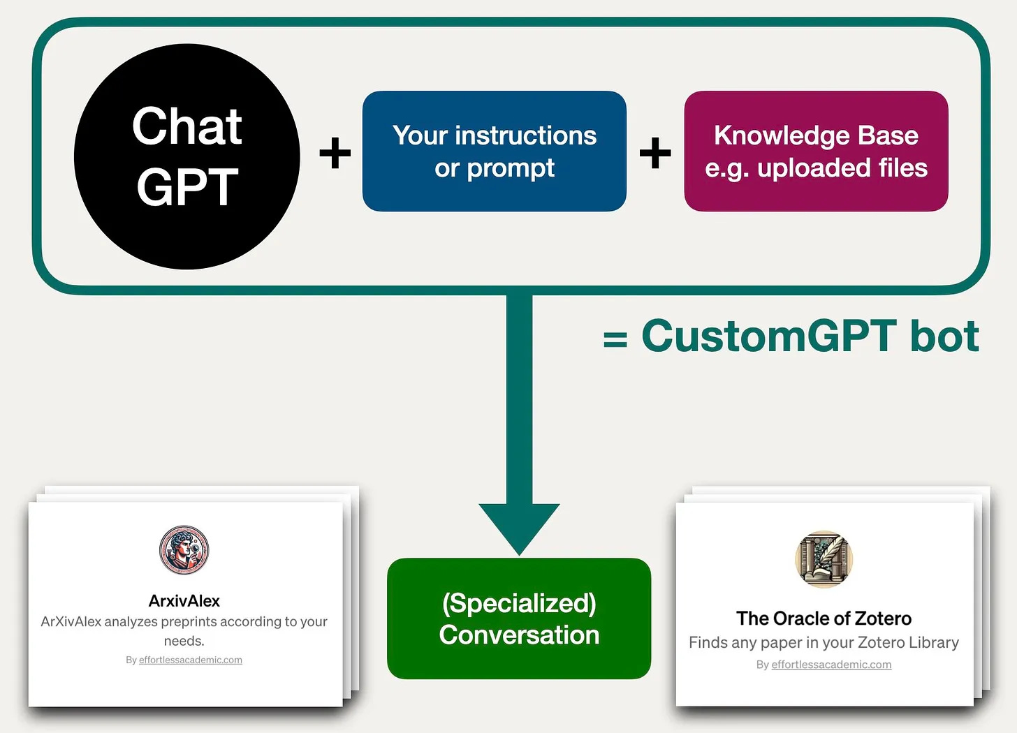 Bunun pratikte nasıl yapılacağı kullanım durumuna göre değişir. En temel yöntemler, araştırmacıların doğrudan ChatGPT ile etkileşime girmesini ve ona sorular sormasını içerir. Spektrumun diğer ucunda, kullanıcıların belirli bir veri kümesi verildiğinde bir konuyla ilgili herhangi bir soruyu yanıtlamak için kişiselleştirilmiş bir botu eğitebilecekleri özel GPT'ler yer almaktadır. Bu yapay zeka botlarına, belirli görevleri daha iyi çözmelerine yardımcı olmak için belirli metinler, kitaplar, makaleler vb. verilebilir. Örneğin bir bot, verileriniz için en iyi istatistiksel testleri önerecek şekilde eğitilebilir. Bu asistanların geliştirilmesi söz konusu olduğunda temel sınırlayıcı faktörler kullanıcının yaratıcılığı ve "bilgi istemi okuryazarlığı "dır.