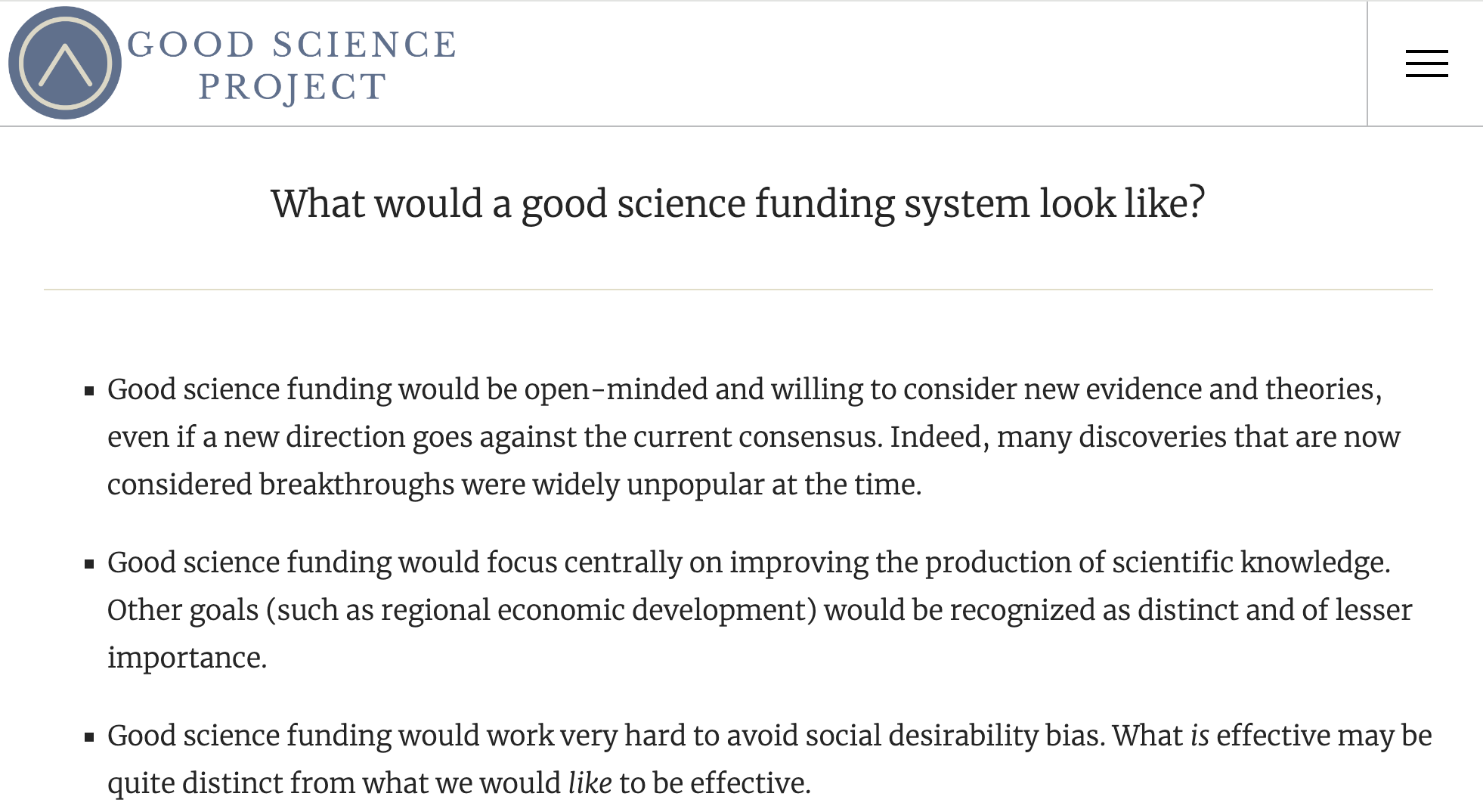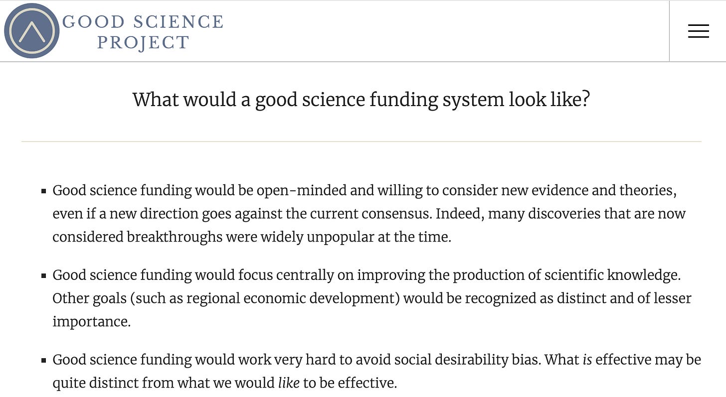 Good Science Project sitesinde paylaşıldığı üzere, daha iyi bir bilim finansman sistemi için yol gösterici ilkeler.